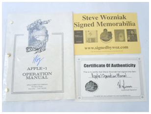 "Original Apple 1 Computer made and purchased in 1976. A keyboard that was used with it will be included. Also a copy of the owners manual signed by Woz. Special courier delivery and payment